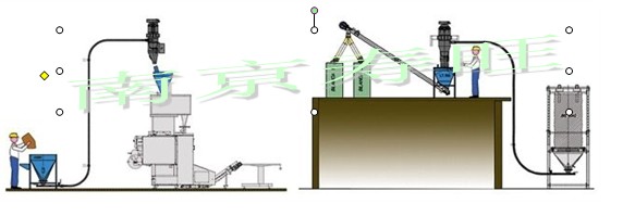 負壓送氣力輸送系統(tǒng)一般用羅茨真空泵或真空發(fā)生器動力源,抽吸系統(tǒng)內(nèi)的空氣,輸送管內(nèi)形成低于大氣壓的負壓,進風口形成物料與氣體的兩相流,進入管道,在一定的流速下,吸送到終點的料氣分離設備,物料在重力或離心力的作用下分離出來進入料倉,氣體經(jīng)羅茨真空泵或離心機排入大氣。
